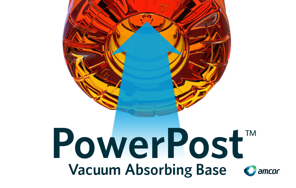 PowerPost is the most advanced lightweighting technology for hot-fill beverages on the market today. PowerPost builds on Amcor’s patented, vacuum-absorbing technology PowerStrap™. The PowerPost base has two key technologies: an invertible, central post that actively displaces vacuum, and PowerStrap, the flexible ring surrounding the post. After filling, the post is inverted to actively displace vacuum inside the container and, as the product cools down, the surrounding ring flexes to passively absorb any remaining vacuum.