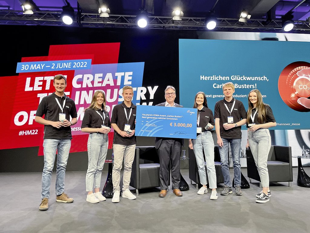 A team of six trainees from Arburg won the VDMA “Carbon Busters” Award on 30 May 2022. The competition, which offered a first prize of 3,000 euros, was held by the German Mechanical Engineering Industry Association (VDMA) as part of the Hannover Messe trade fair to honour the work of young climate protectors. The winning entry was an idea aimed at reducing the carbon footprint of coffee machines.