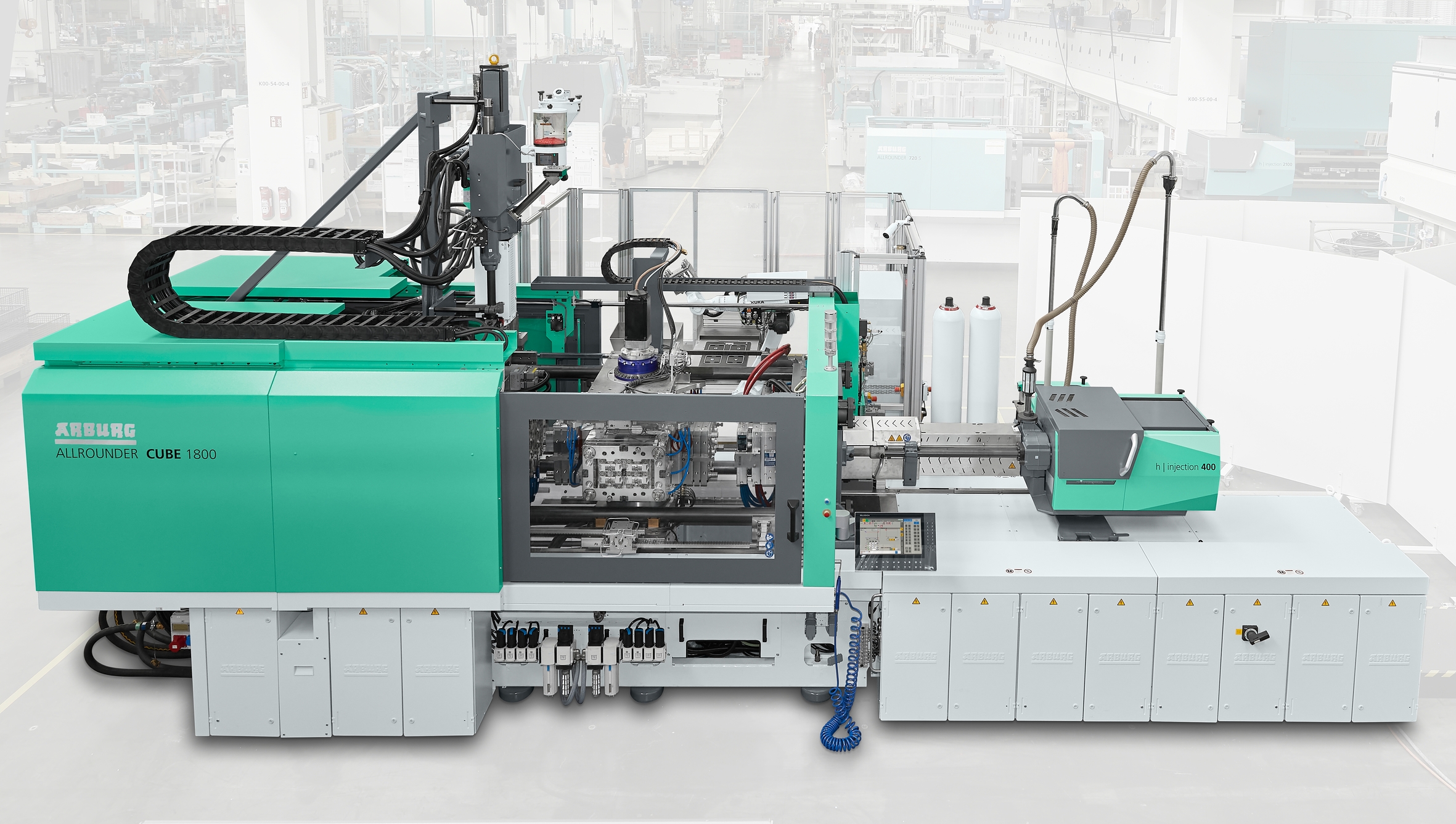 Depending on the circumstances, one Allrounder Cube can replace several conventional injection moulding machines and reduce the overall footprint by up to 75%. Innovative cube-mould technology significantly reduces cycle time. In addition to efficient high-volume production in the packaging and medical technology industries, compact cube machines such as the Allrounder Cube 1800 are also increasingly being used for the production of technical parts and smaller quantities.
