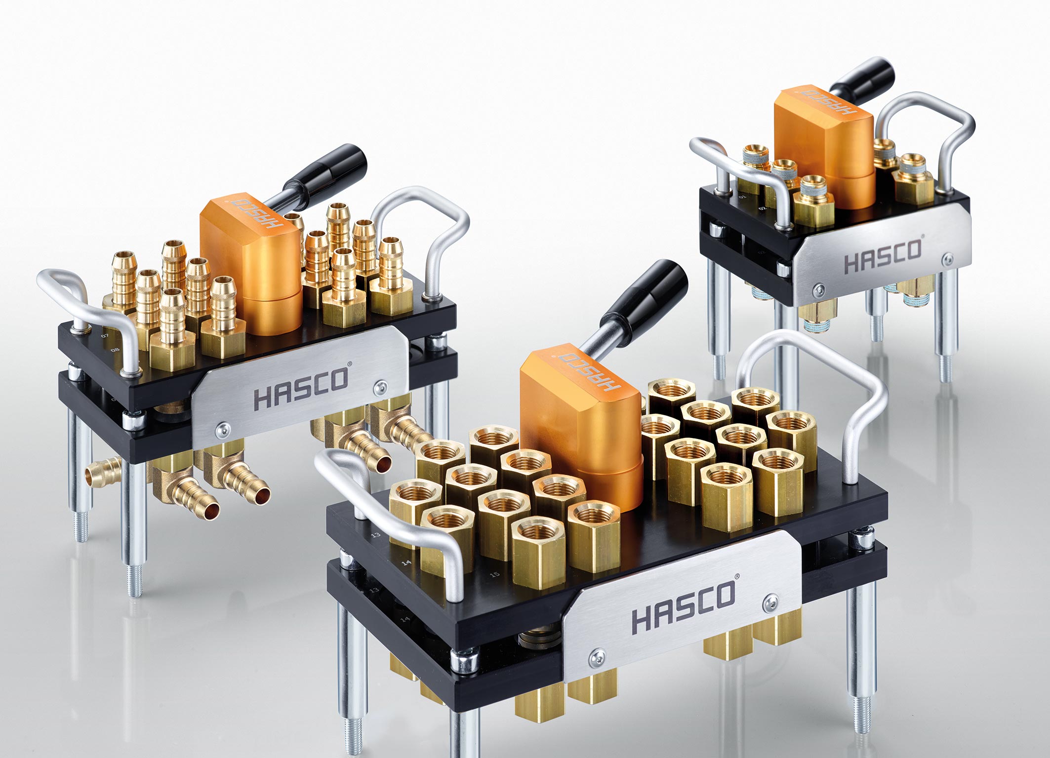 HASCO thus offers a wider range of services for customers throughout the world. Overall, the extension to the product range comprises 60 new products, each with three model series. Plates are available for 6, 12 and 20-connections, whereby the couplings can also be replaced without dismantling the hoses. The modular structure allows individual configuration as well as simple integration into all existing systems.