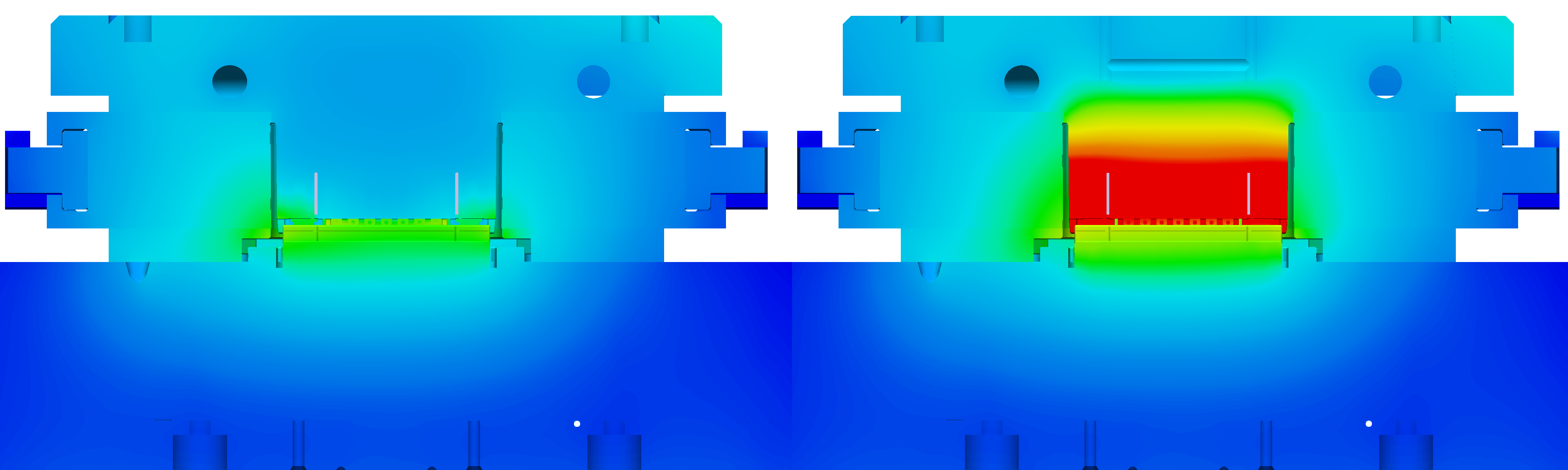 Cooling is critical to the quality of thermoplastic components. Temperature differences lead to different cooling rates and create residual stresses and warpage in the finished component. This becomes problematic when there are differences in wall thickness within the component, as the cooling requirements are highly variable locally. Conformal cooling, meanwhile, is an established concept in tooling that is increasingly being used. Simulation allows the cost of conformal cooling to be evaluated in advance against the advantages of the conventional concept (improved component quality, shorter cycle times, etc.).