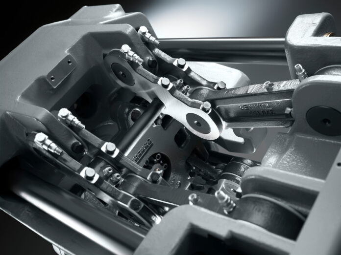 The kinematics of the double five-point toggle system is optimally adapted to the electric drive. This provides for symmetrical force application during movements and mould locking – even with heavy moulds. The toggle can also be adapted with ease to different mould installation heights by means of a servo-electric adjustment system. Automatic clamping force regulation, which generates a consistent locking force and thus automatically compensates for the thermal expansion of the mould, is available as an option.