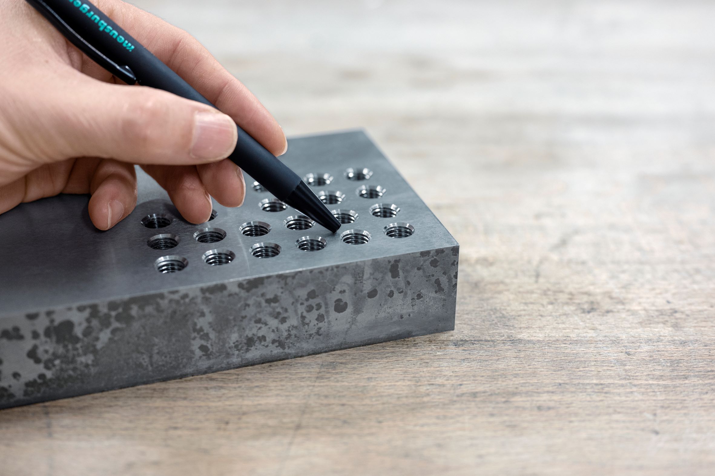 For wire EDM, a starting hole in the eroding blocks is advantageous, since otherwise the EDM contour cannot be optimally determined. Moreover, introducing the wire from the side leads to high wear. At Meusburger, the blocks for eroding can therefore be configured and ordered with up to 50 customisable starting holes. The configuration is very easy in the web shop. As of now, threads can also be made in the hardened blocks for eroding from Meusburger, to make screwing-in the contour punches even more efficient.