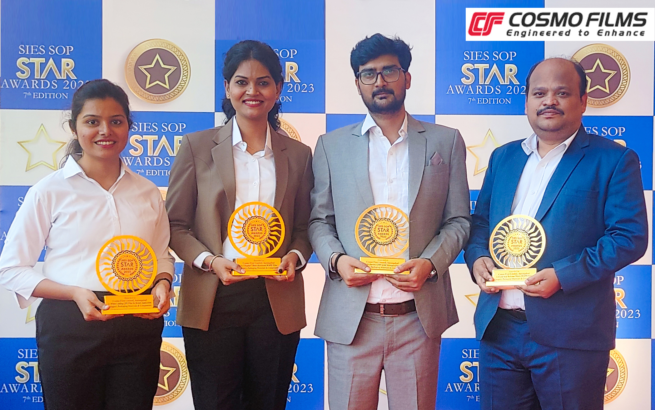 Cosmo Films, a global leader in specialty films for packaging, lamination, labelling, and synthetic paper vertical, under Cosmo First a publicly listed entity, won the SIES SOP Star Award, 2023 held in Navi Mumbai.
